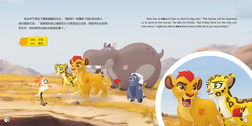 風(fēng)靡世界多年的經(jīng)典電影《獅子王》不僅深受人們的喜愛,還給一代又一代的孩子留下了深刻的印象。迪士尼全新上映的動畫片《小獅王守護(hù)隊》講述的是獅子王辛巴的兒子——凱安,組建并帶領(lǐng)小獅王守護(hù)隊保衛(wèi)榮耀國、維護(hù)生態(tài)平衡的故事。這支小獅王守護(hù)隊由五個動物組成:榮耀國*兇猛的動物——小獅子凱安,*勇敢的動物——蜜獾邦加、速度*快的動物——獵豹小麗、*強(qiáng)壯的動物——河馬貝西提,視力*敏銳的動物——牛背鷺歐諾。這樣一支奇怪的隊伍,到底能不能成功地保護(hù)榮耀國的動物們呢? 《小獅王守護(hù)隊雙語故事》由迪士尼官方授權(quán),是一套集趣味性和學(xué)習(xí)性于一體的雙語故事書。書中每一頁都選取了1~2個重點(diǎn)單詞,方便孩子在閱讀的過程中更好地學(xué)習(xí)英語單詞。每一本書均附贈了中英雙語音頻,可以作為孩子練習(xí)聽力、朗讀的好材料。相信孩子在讀完、聽完這些美好的故事之后,收獲的不僅僅是中文和英語的閱讀能力,還有心靈的健康成長。