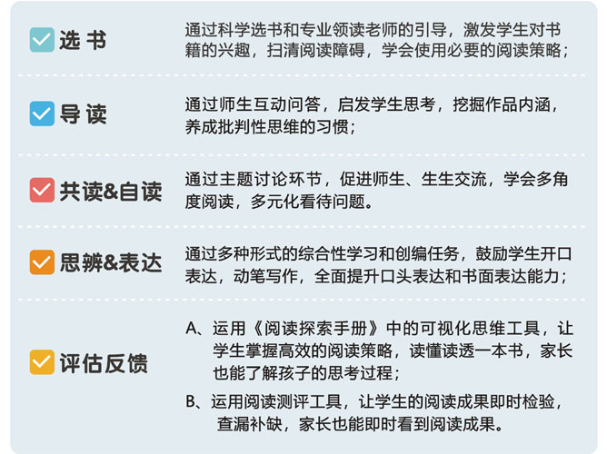 精選古今中外的世界經(jīng)典名著,在教師專業(yè)指導(dǎo)下,不僅保證小學(xué)生可以讀完,還保證讀懂、讀透,讀有所獲。